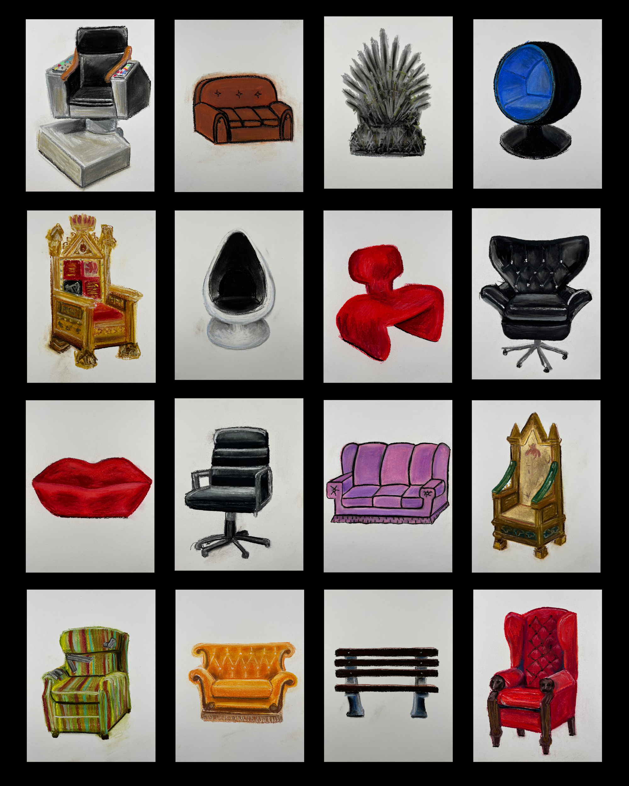 The Friends couch? Worn in all the right places. Morpheus' red armchair? A velvet gateway to alternative realities. These chairs aren't just props, they're portals. A reminder that pop culture lives in the furniture of our imagination. The artwork reimagines these empty seats as an open invitation: to pause, sip, and let the coffee carry you somehwere.